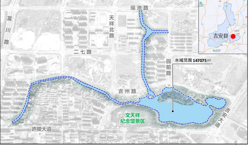 本项目位于吉安县天祥景区内,建设内容包括对天祥湖水体进行人工净化、水质改善、生态修复和保育,治理面积约112481平方米。修复后的天祥湖消除黑臭,夏季无蓝绿藻生长,主要富营养化指标达到地表Ⅴ类,水体透明度1米以上,提升后天祥公园内湖泊水环境质量,不仅改善了周边居民生活环境,也将打造成为美丽中国“吉安县样板”,为建设“绿色生态江西”作出贡献。