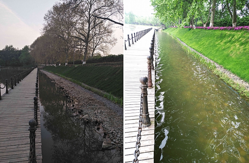 项目简介:东湖天鹅湖位于武汉东湖宾馆之内,水域面积13.5万m2。治理前水体总氮、总磷均超过地表水Ⅴ类阈值,水体富营养化,藻类滋生。经过中科水生人的不懈奋斗,在10天内完成天鹅湖应急治理工程。通过应急除藻、内源控磷、沉水植物重建等生态手段,天鹅湖水体主要指标达到地表水Ⅳ标准,水体透明度由40cm以下上升到60cm以上,恢复西、南沿岸沉水植物,整个水域生态景观得到大幅提升。