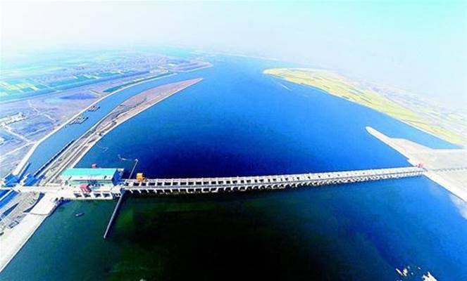 图为:兴隆水利枢纽工程全面竣工。 (楚天云图航拍中心 摄) “这是建在砂砾上的特大型水利枢纽工程。”前不久,京津冀豫鄂五省党报荆楚行记者听到兴隆工程建管处负责人的介绍,大家很吃惊。 在人们的印象里,水库大坝多建在山丘狭窄处,基础处理都要挖到地下岩石构造。三峡、葛洲坝、丹江口等水库大坝莫不如此。而兴隆水利枢纽工程的地质却是独特的,它是在平原河流上建设大坝,河床宽阔,泥沙沉积。地质构造,上部为30米左右的飘移粉细沙,下部为30米左右的砾卵石,底部为泥岩和砂岩,覆盖层厚度60米左右。如果开挖